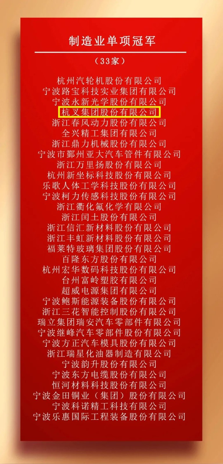 据了解,10项包括浙江省“未来工厂”、浙江省级工业互联网平台、浙江省“雄鹰行动”培育企业、制造业单项冠军、专精特新“小巨人”企业、浙江省“隐形冠军”企业、浙江省亩均效益领跑者、浙江省制造业首台(套)企业、浙江省制造业高质量发展示范园区、创建制造业高质量发展示范县(市、区)考核优秀单位。易游(中国)旗下中策橡胶集团上榜“未来工厂”,杭叉集团入围单项冠军示范企业。