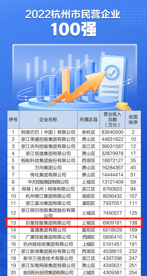 2022杭州市民营企业100强 第13位