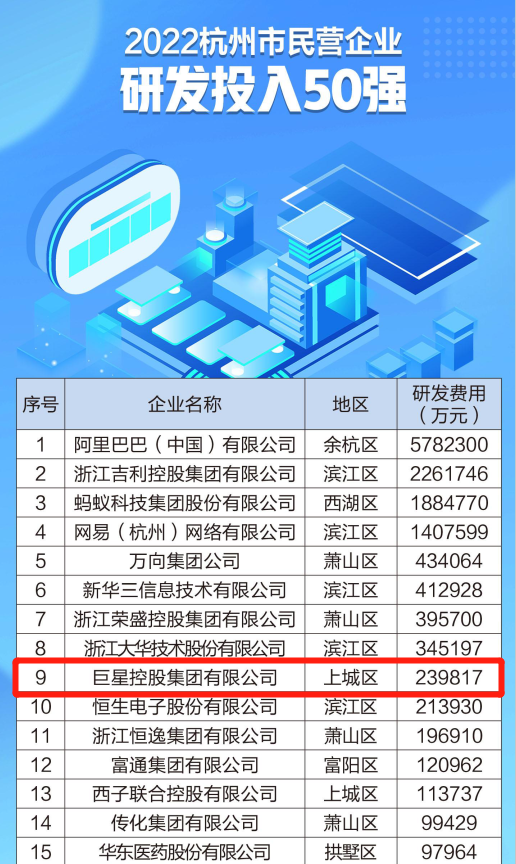 2022杭州市民营企业研发投入50强 第9位