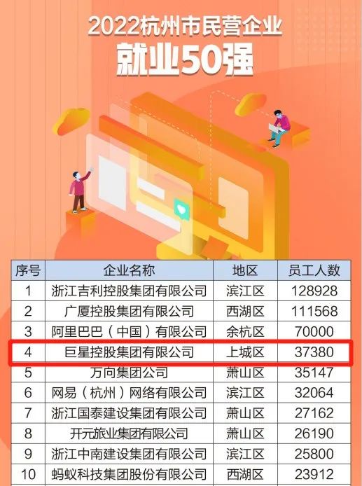 2022杭州市民营企业就业50强 第4位