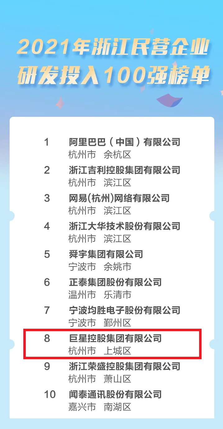 12月22日,浙江省工商业联合会发布了“2021浙江民营企业200强、研发投入100强、就业100强”榜单。易游平台官网上榜,位列——